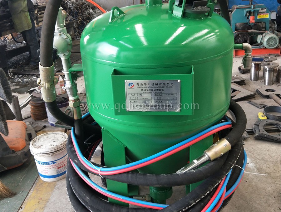 無(wú)塵噴砂機(jī)(濕式噴砂罐)其工作原理是利用高速砂流的沖擊作用清理和粗化基體表面的過(guò)程。采用壓縮空氣為動(dòng)力,在噴砂罐中形成一種水和砂的混合體,再以形成高速噴射束將噴料(推薦使用玻璃砂)高速噴射到需要處理的工件表面,由于磨料對(duì)工件表面的沖擊和切削作用,使工件的表面附著物得到清除,同時(shí)會(huì)使清潔后的工件相對(duì)粗糙,增加了它和涂層之間的附著力,延長(zhǎng)了涂膜的耐久性,也有利于涂料的流平和裝飾。